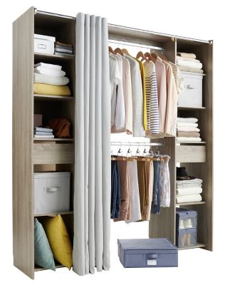 Kit Dressing Effet Chene Clair Avec Rideau H 200 X L 180 Cm X P