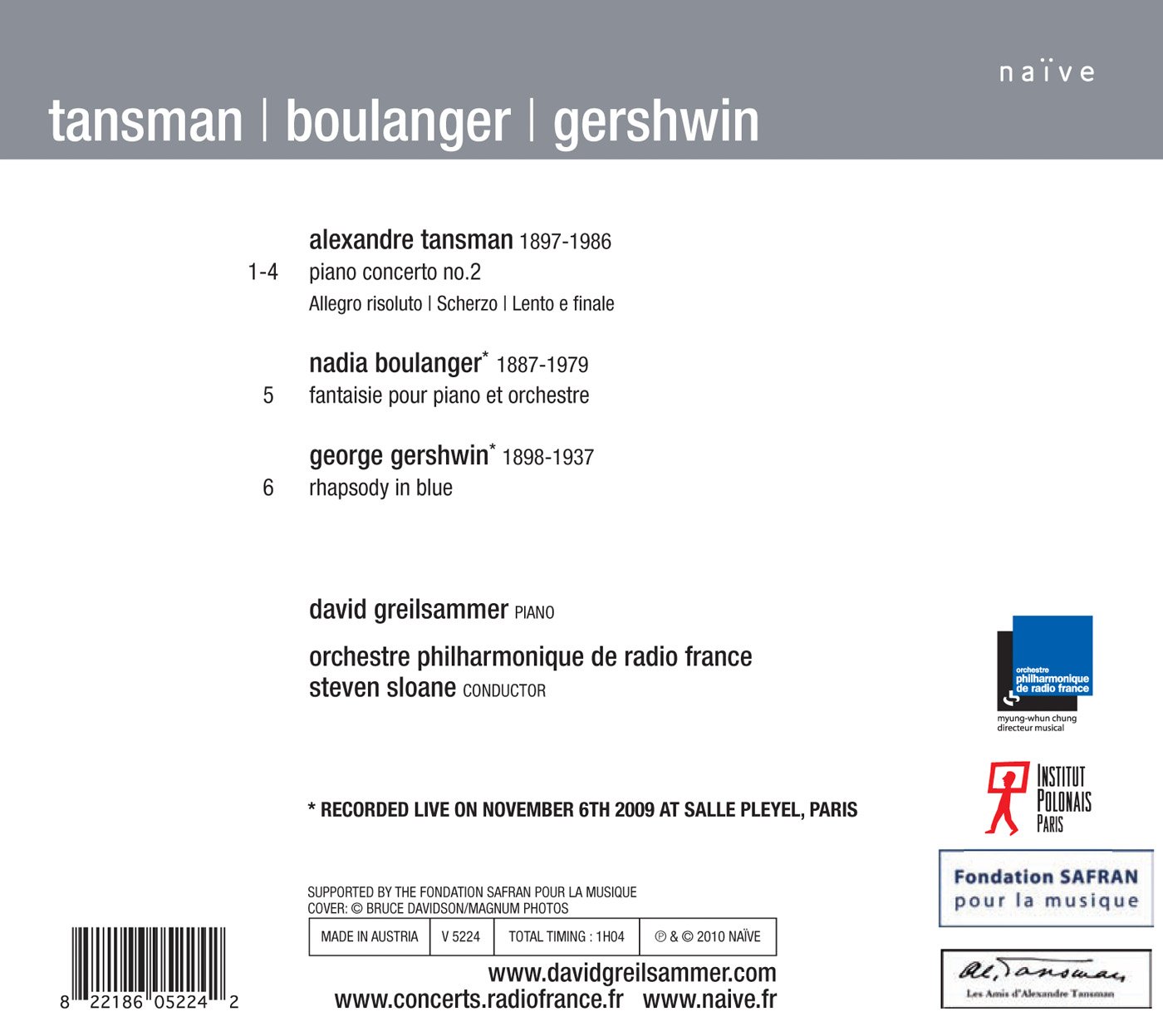 Tansman Boulanger Gershwin Piano Concerto No 2 Fantaisie