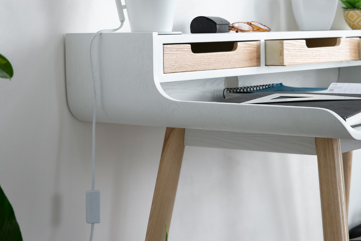 Bureau Scandinave Blanc Et Bois Cbc Meubles