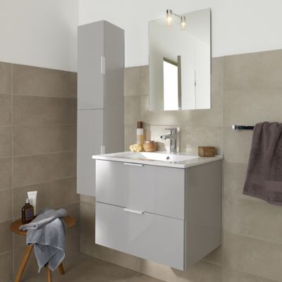 Meuble Salle De Bain Laquee Blanc Ou Gris Imandra Brico Depot