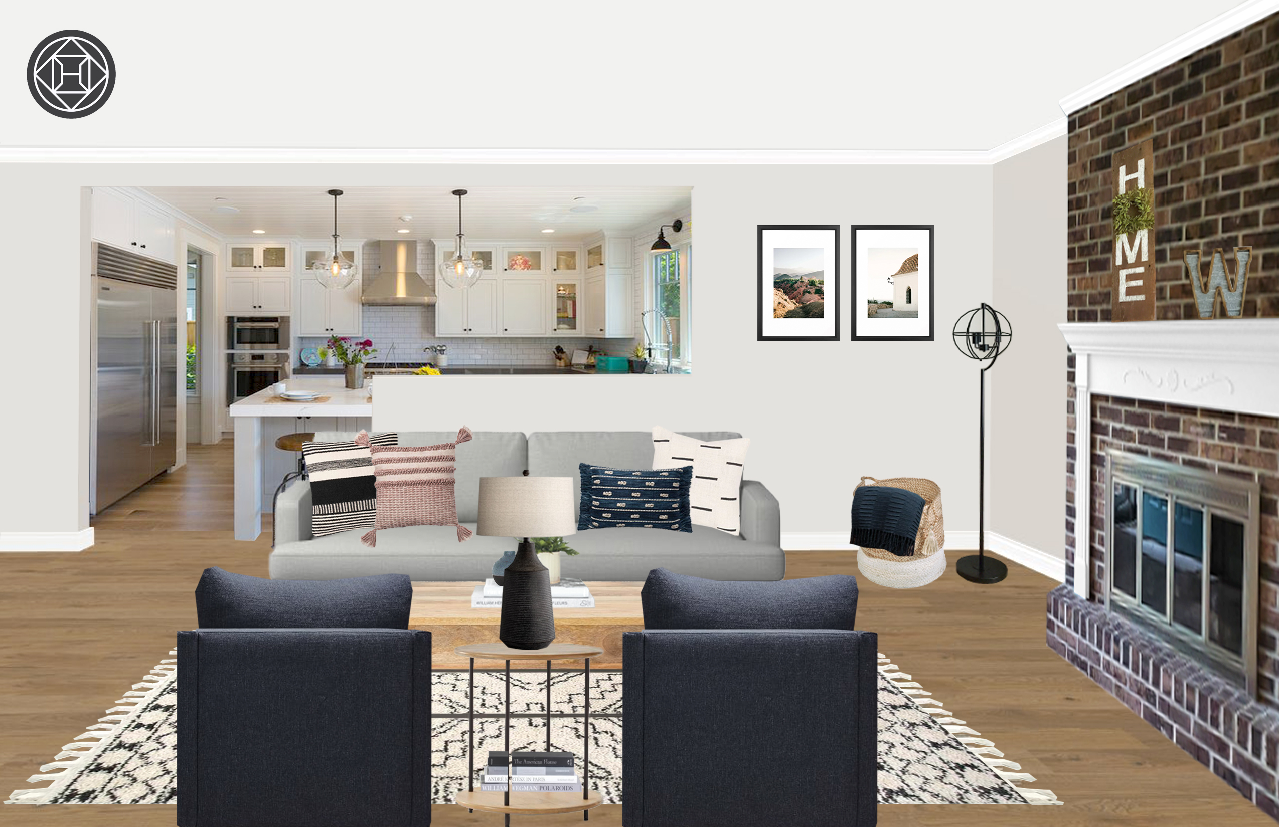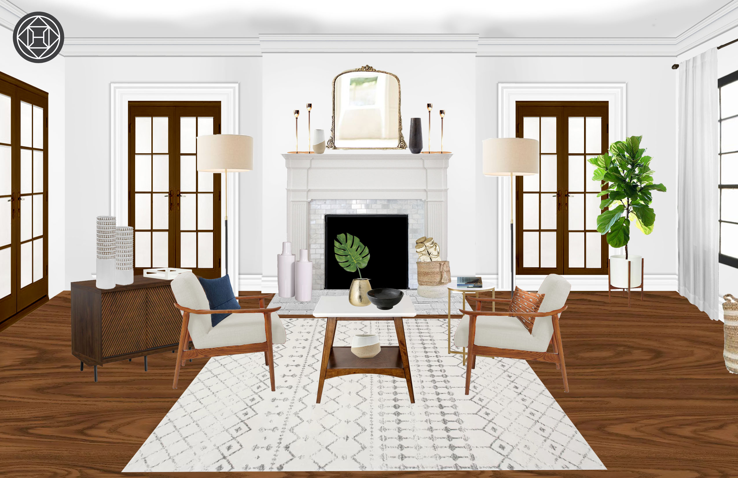 Bohemian Farmhouse Midcentury Modern Living Room Design By