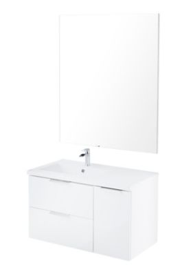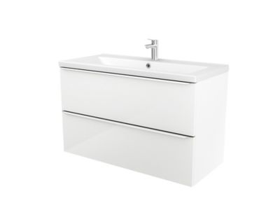 Meuble A Suspendre Blanc Laque Brillant Familial 90 Cm Castorama