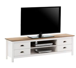 Meuble Tv Campagne Gustave Blanc Et Bois En 2020 Meuble Meuble Blanc Et Bois Meuble Tv Pas Cher