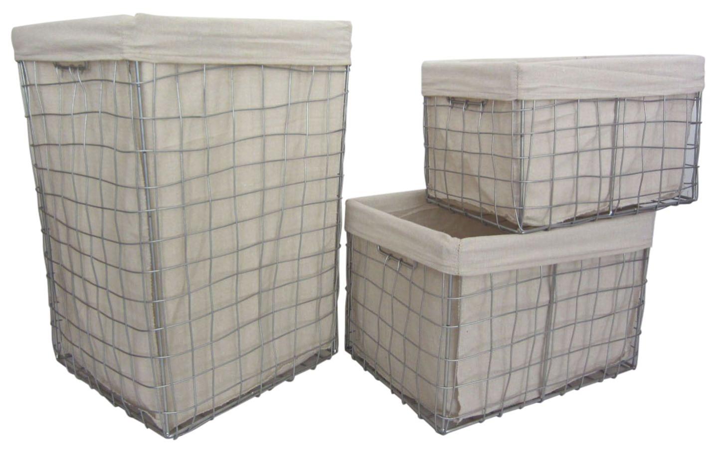 Panier A Linge Et Corbeilles En Metal Argente Lot De 3 Aubry