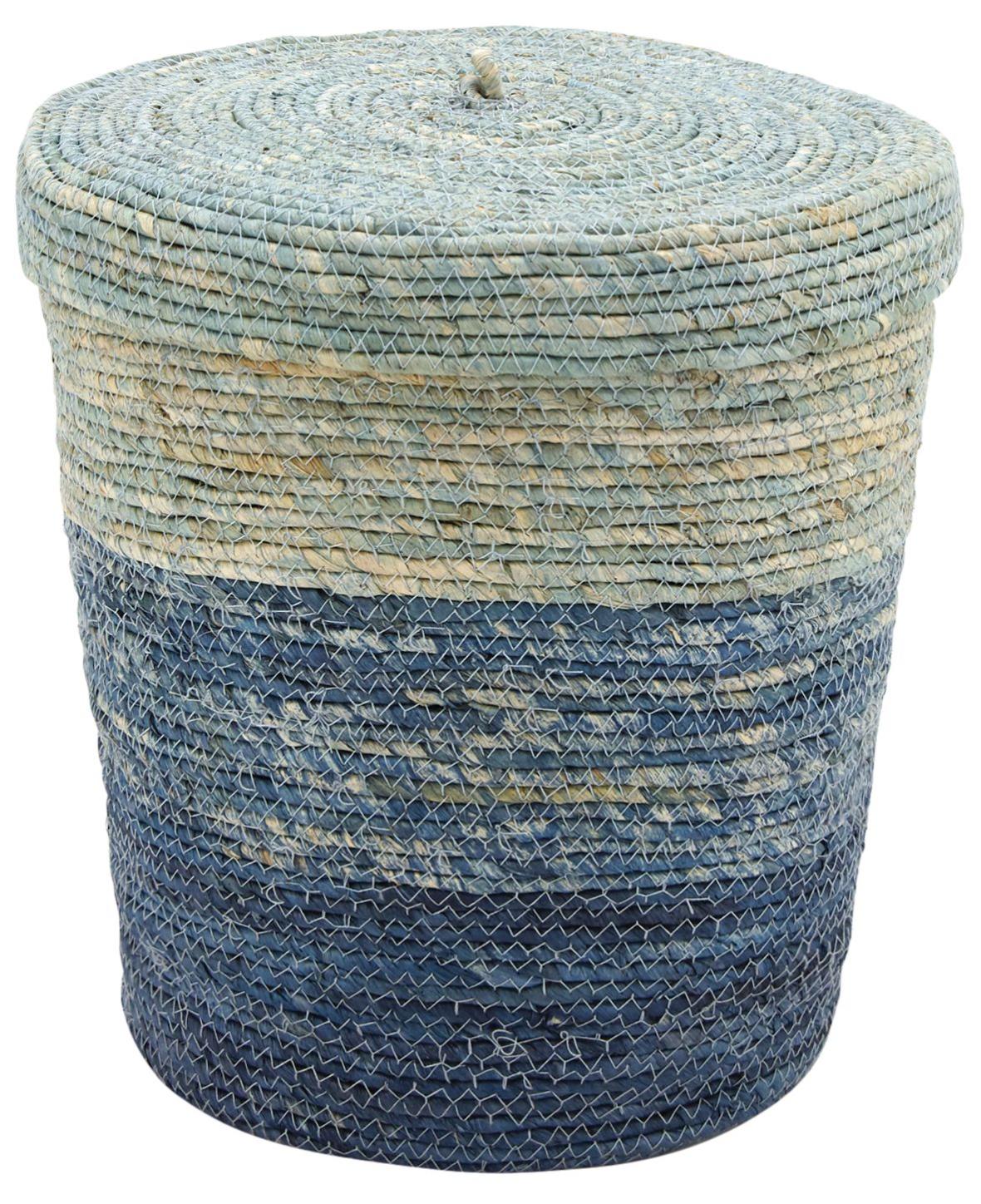 Panier A Linge Textile Bleu Et Blanc L 50 X H 40 X P 40 Cm Arne