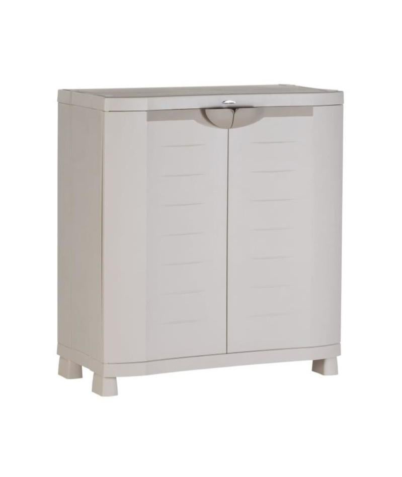 Armoire De Rangement Basse 2 Portes Blanc Et Beige Plastiken