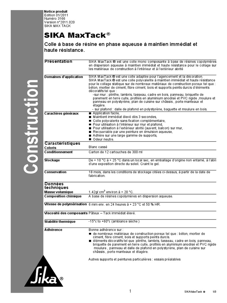 Sika Maxtack Colle A Base De Resine En Phase Aqueuse A Maintien