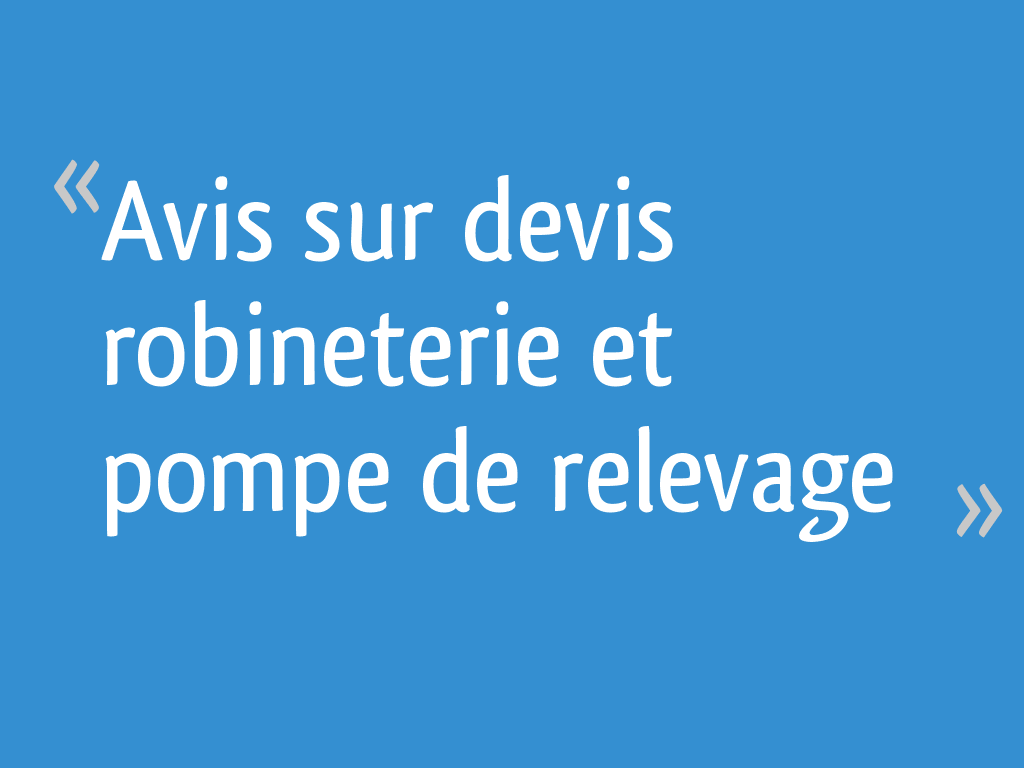 Avis Sur Devis Robineterie Et Pompe De Relevage