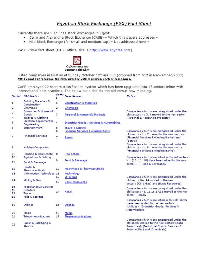 Egyptian Stock Exchange Egx Fact Sheet C Documents And